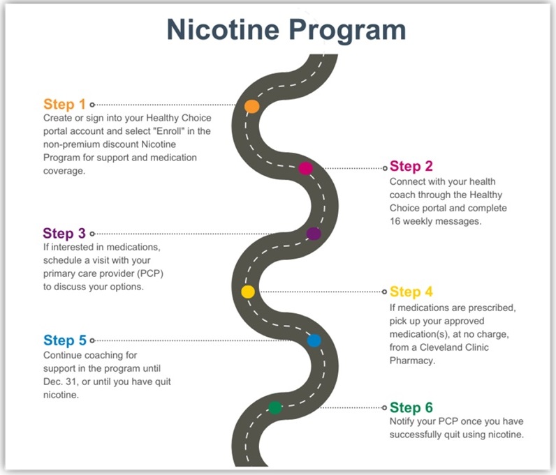 - Create or sign into your Healthy Choice portal account and select "Enroll" in the non-premium discount Nicotine Program for support and medication coverage.